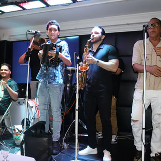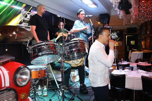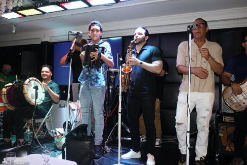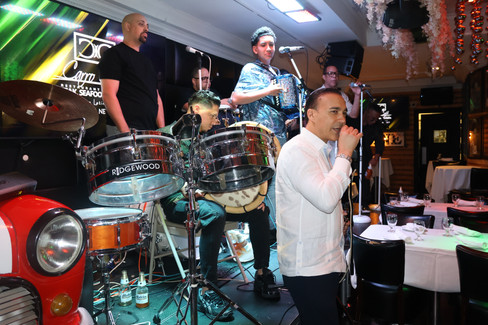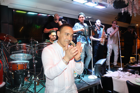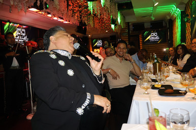 La velada estuvo llena de sorpresas, comenzando con la llegada de CJ Acordeón, el acordeonista más joven del mundo en el ámbito del entretenimiento local, quien amenizó la noche con sus éxitos de merengue típico. Pero el verdadero espectáculo llegó cuando un mariachi, acompañado de un impresionante imitador de Juan Gabriel, arrancó las carcajadas y ovaciones de los invitados, quienes disfrutaron cada momento con entusiasmo y alegría.
